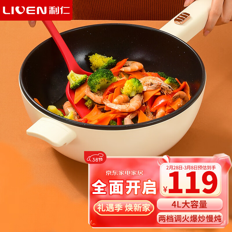 利仁(Liven)电炒锅电煮锅电蒸锅电火锅家用火锅锅多功能锅多用途锅烤肉锅电热锅辅食锅小电锅4L DCG-J2807价格:119.00元!