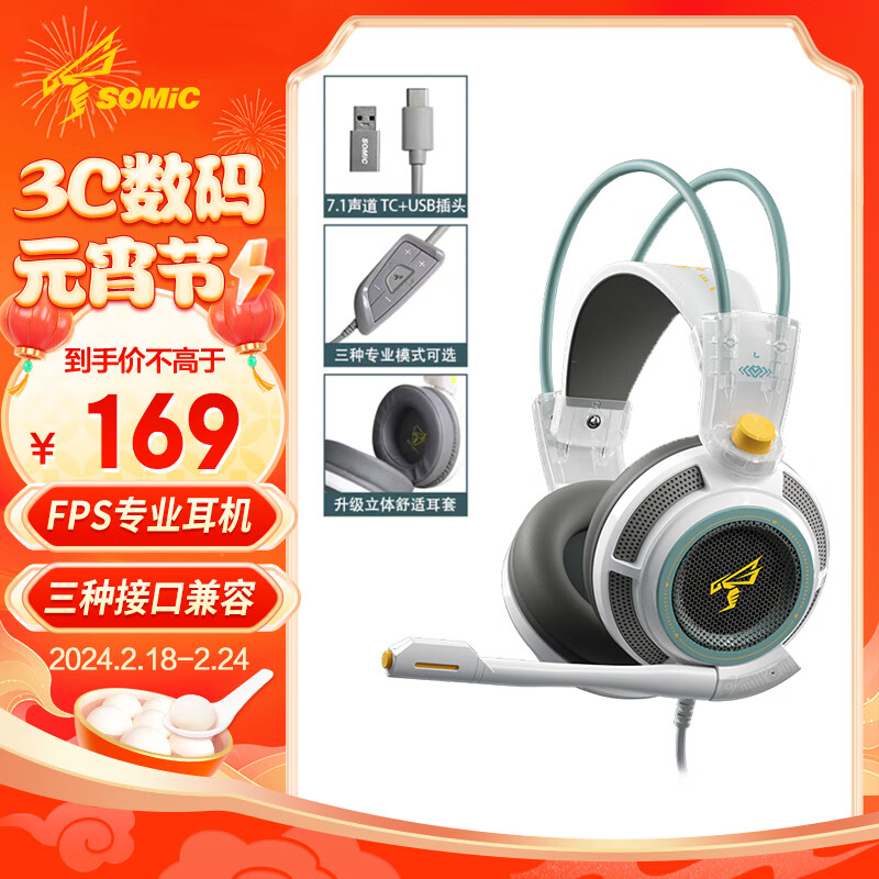 硕美科G941游戏耳机头戴式电脑学生有线电竞耳麦type-C/USB 7.1吃鸡csgo/pubg手游和平精英通用价格:159.00元!