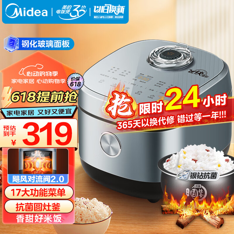 美的(Midea)飞快系列智能电饭煲电饭锅家用5L聚能釜冷风破泡防溢22min快蒸煮多功能米饭锅MB-RC550(3-10人)价格:319.00元!