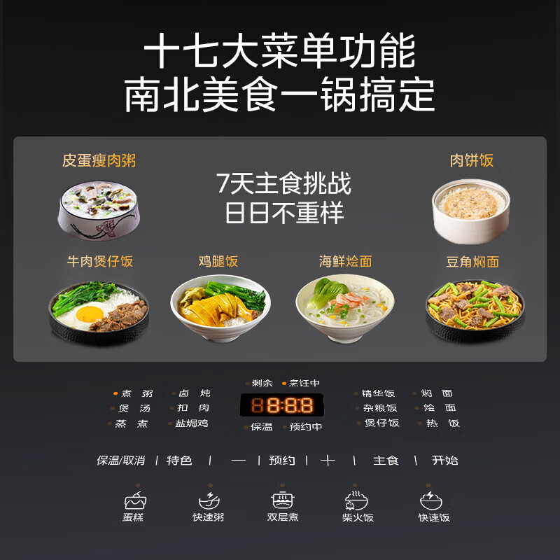 功能:快速饭,预约定时,柴火饭
