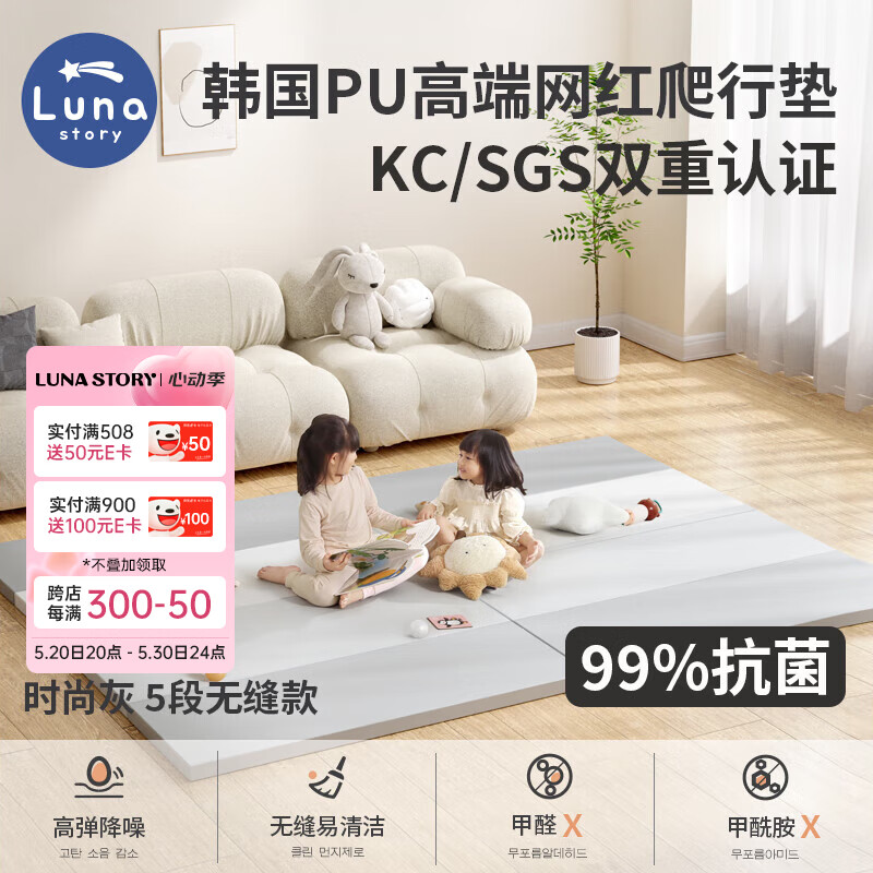 LUNASTORY韩国网红婴儿爬爬垫 宝宝爬行垫高端PU无缝儿童消音防摔防潮地垫价格:1049.00元!