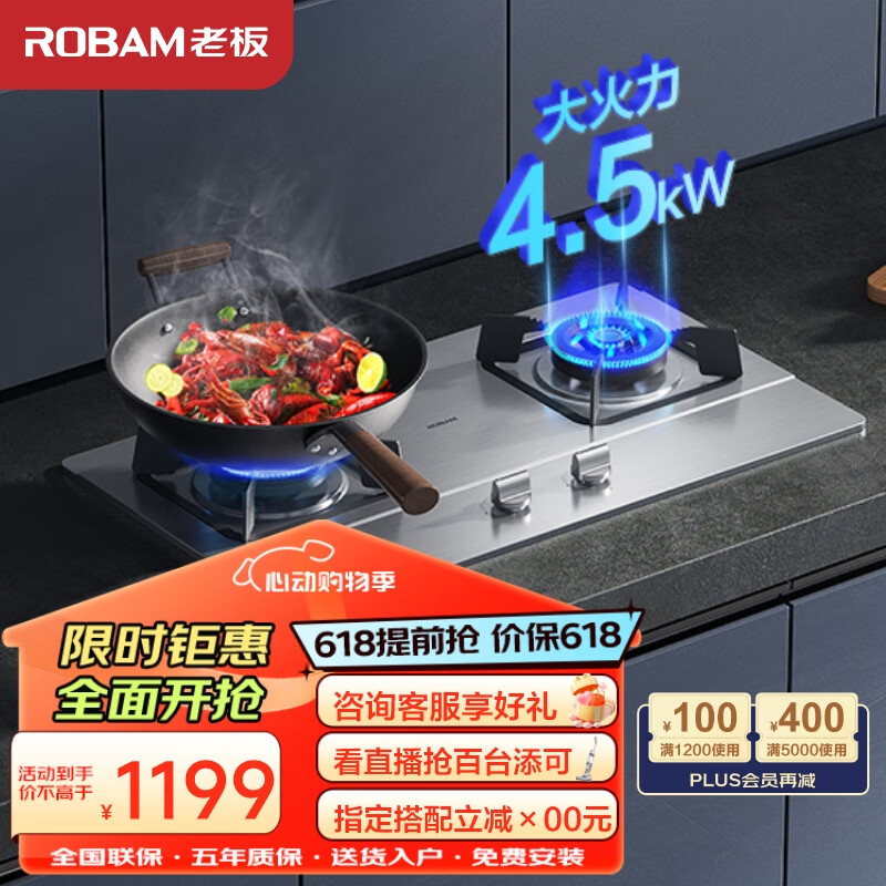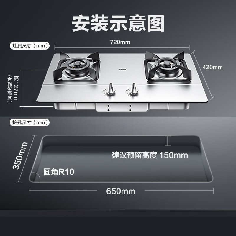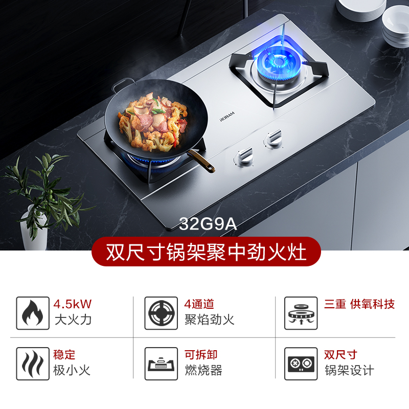 老板(Robam)JZT-32G9A燃气灶嵌入式灶具 家用双灶双尺寸锅架台嵌两用4.5kW大火力耐用不锈钢天然气价格:1299.00元!