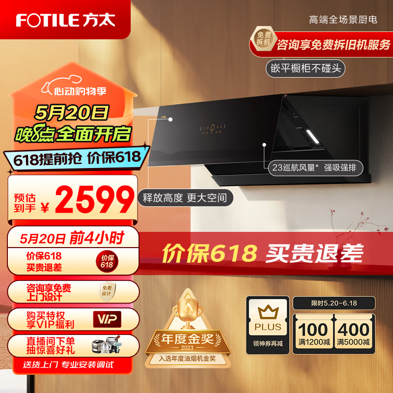 方太家用侧吸抽油烟机 23m/min大吸力 直流变频 智能巡航 小尺寸 01-JCD10TA价格:2799.00元!
