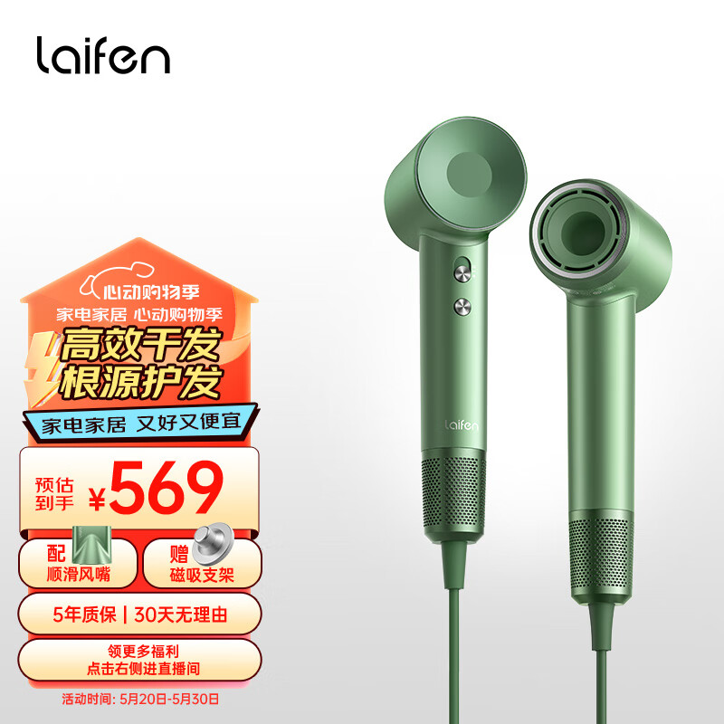 徕芬Laifen 家用吹风机 大功率速干不伤发电吹风 莱芬负离子低噪音吹风筒 赠男士女士520情人节礼物 LF03青柚价格:569.00元!