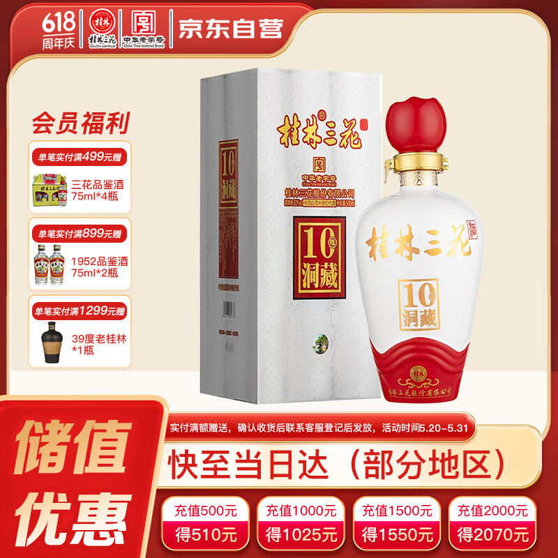 桂林三花酒 10年洞藏 米香型白酒 52度 500ml 单瓶装 广西送礼白酒价格:239.00元!