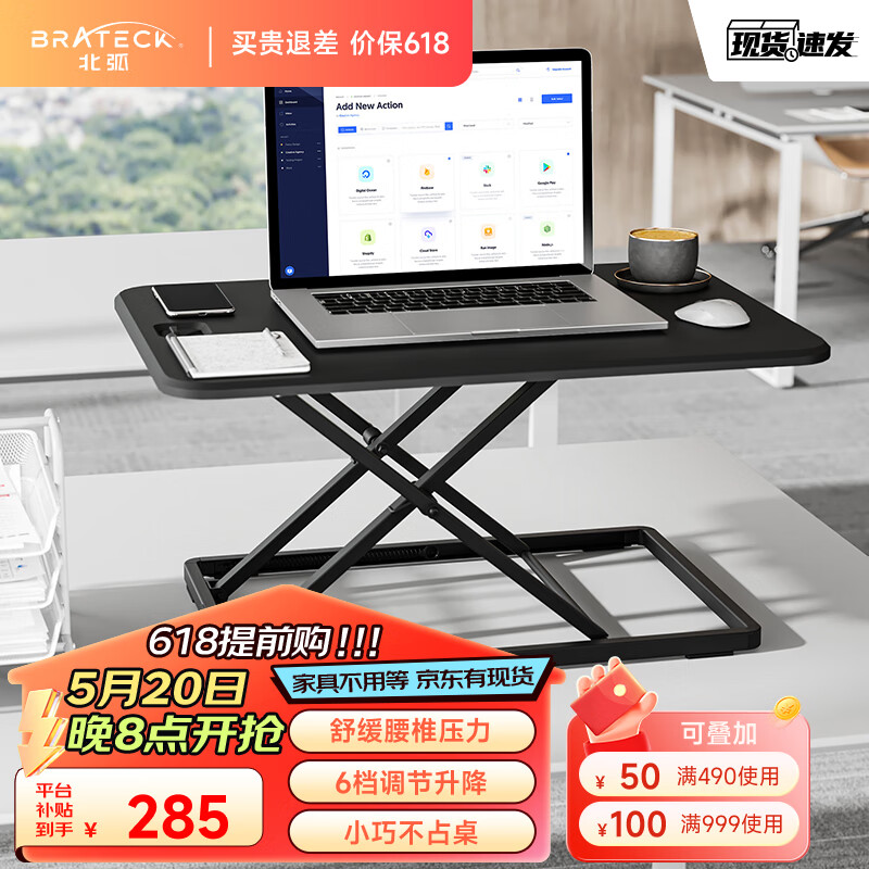 Brateck升降电脑桌 北弧站立办公升降台 站立式电脑升降支架 D250黑价格:345.00元!