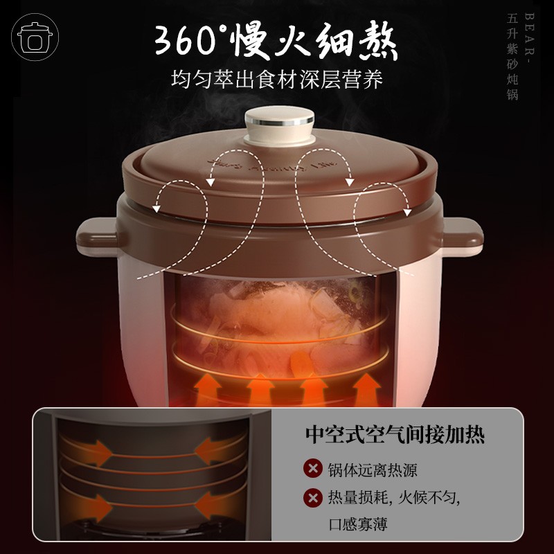 小熊(Bear)电炖锅 煲汤锅 炖汤锅 电砂锅 紫砂锅 煮粥锅煲粥熬粥养生神器 可预约定时 DDG-D50N1 5升价格:199.00元!