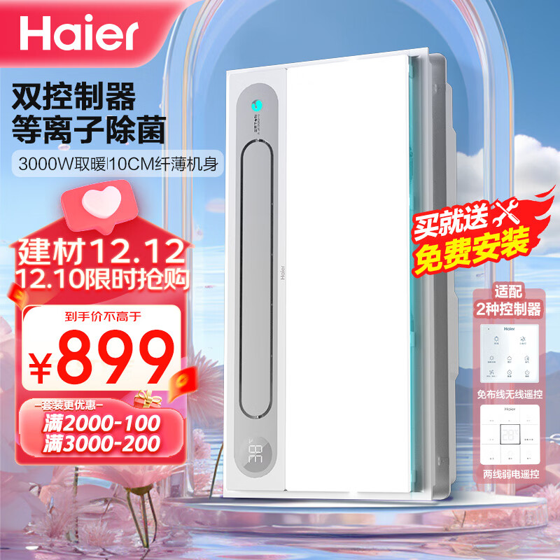 海尔(Haier)海尔双控风暖浴霸照明排气一体集成吊顶卫生间风暖式浴霸H8价格:999.00元!