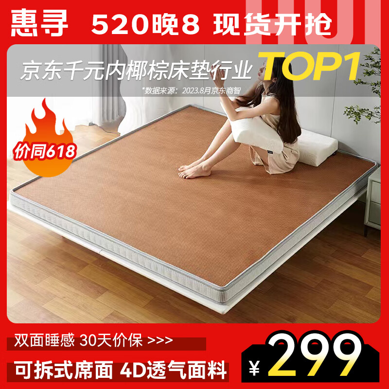 惠寻 京东自有品牌 凉席藤席椰棕床垫4D加厚双面硬棕垫10cm 0.9*2米价格:319.00元!