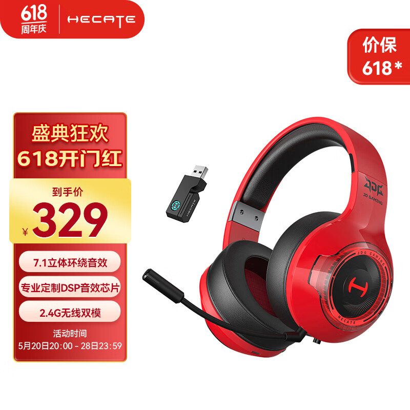 漫步者(EDIFIER)HECATE G4Spro战队版 2.4G蓝牙无线7.1游戏耳机头戴式 双模电脑电竞吃鸡耳机耳麦 红色价格:419.00元!