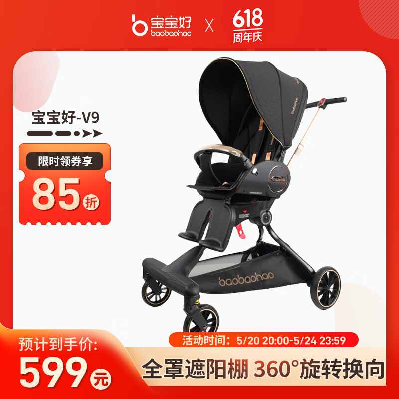 宝宝好溜娃神器轻便折叠双向遛娃车可躺高景观儿童婴儿推车V9黑金时代价格:769.00元!