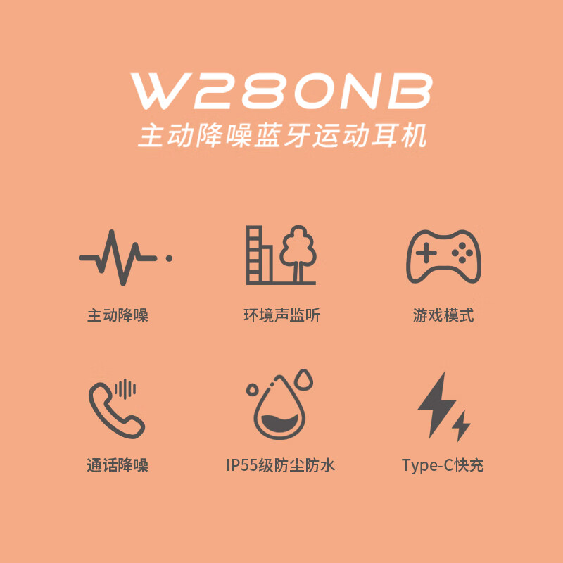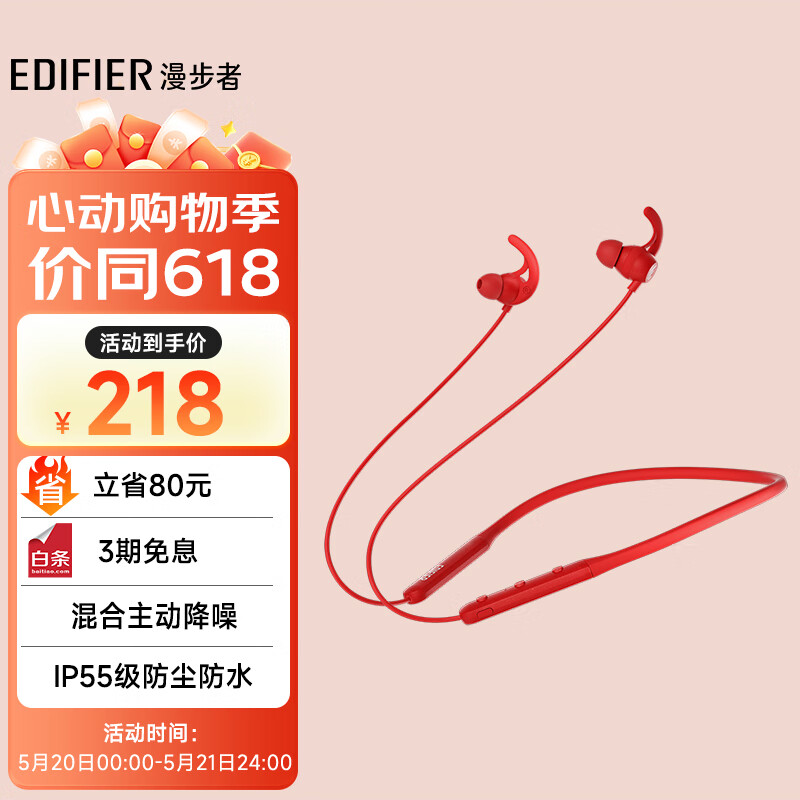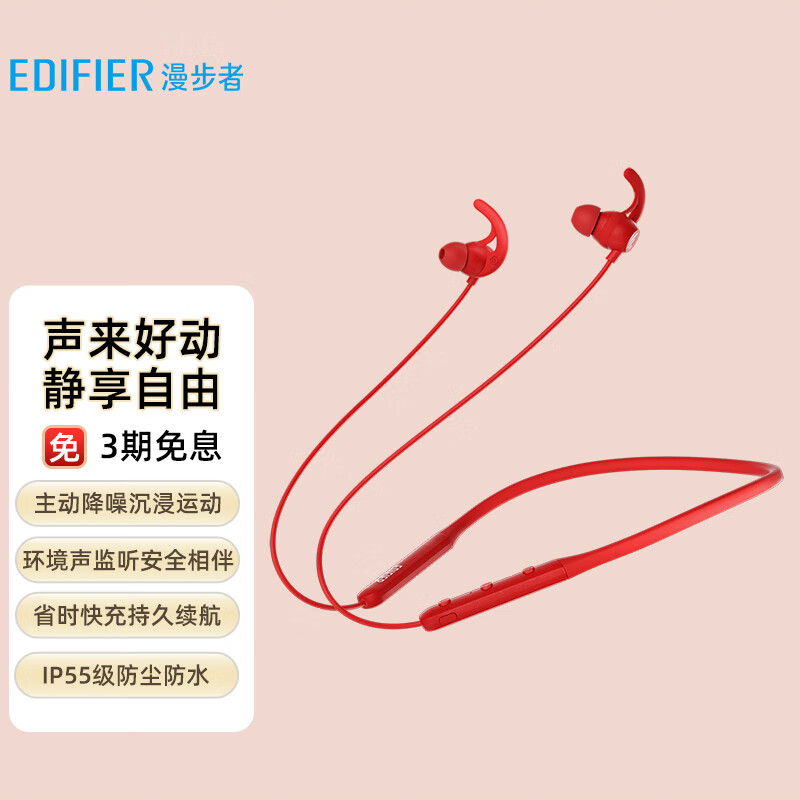 漫步者(EDIFIER)W280NB 主动降噪 蓝牙运动耳机 颈挂式耳机 手机耳机 入耳式降噪耳机 红色价格:248.00元!
