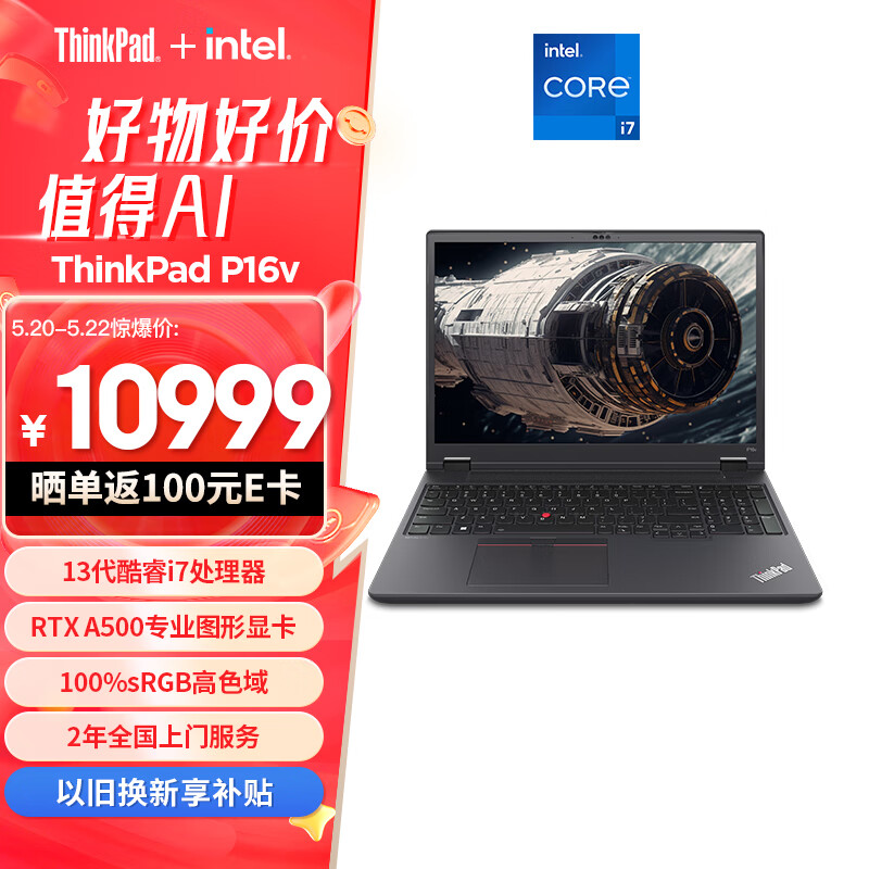 ThinkPad P16v 联想16英寸高性能设计师工作站 13代酷睿i7-13700H 32G 512G RTXA500 商务办公本价格:10999.00元!