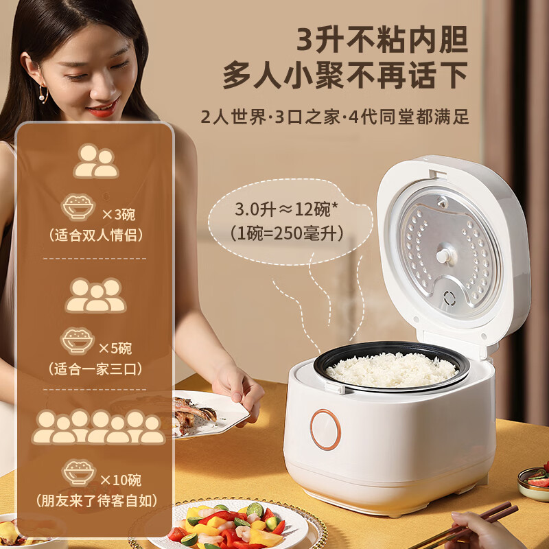 小浣熊智能电饭煲迷你小型1人2家用多功能柴火饭蒸煮米饭锅2-3升大容量低糖电饭锅3-4人用 低糖款 3L价格:319.00元!