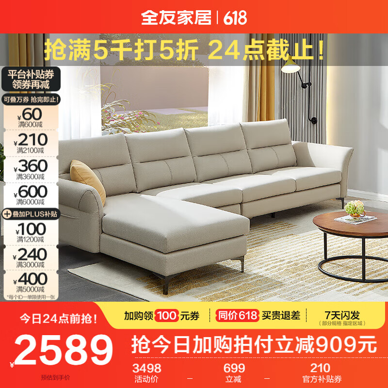 全友家居 现代简约功能科技布艺可拆洗储物转角贵妃沙发客厅102679价格:3498.75元!