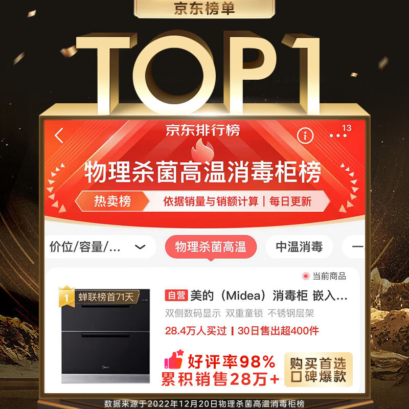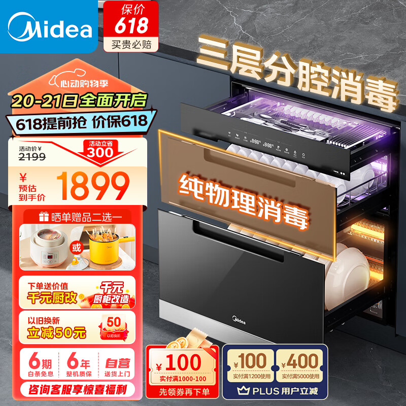 美的(Midea)消毒柜嵌入式家用 厨房餐具碗柜碗筷 紫外线二星消毒 105L三层三门分腔大容量 婴儿童锁110YQ2价格:1999.00元!
