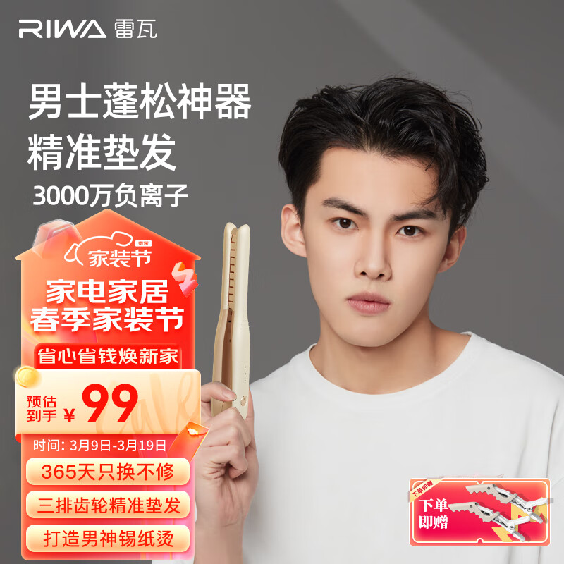 雷瓦(RIWA)玉米夹板烫发棒蓬松夹板男生用 负离子发根蓬松神器短发锡纸烫高颅顶夹板男女通用夹板卷发棒8235价格:97.00元!