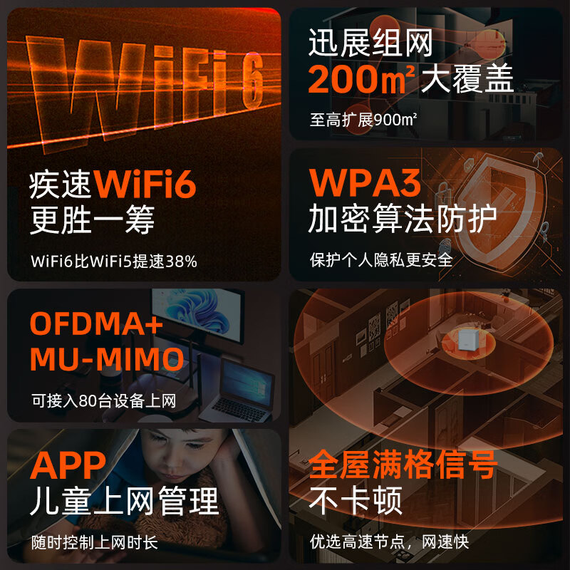 Tenda腾达 全屋WiFi6子母路由器 AX1500千兆双频 Mesh组网无线穿墙王 别墅大户型覆盖套装 EM3两只装价格:259.00元!