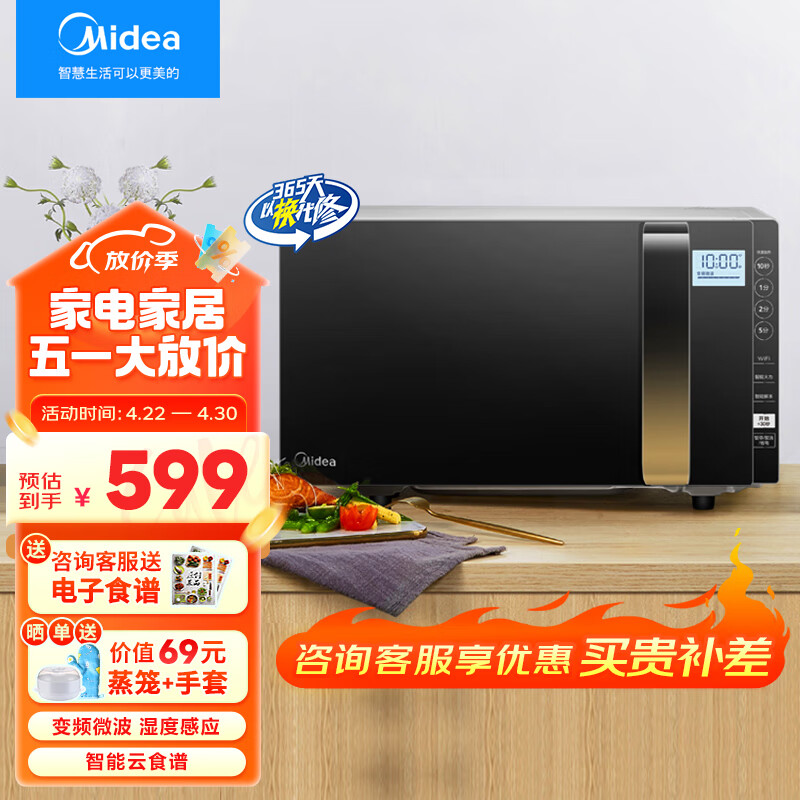 美的(Midea)变频微波炉家用23升 光波烧烤电烤箱一体机 智能湿度感应 平板加热杀菌易清洁 X3-233A [黑色]价格:529.00元!