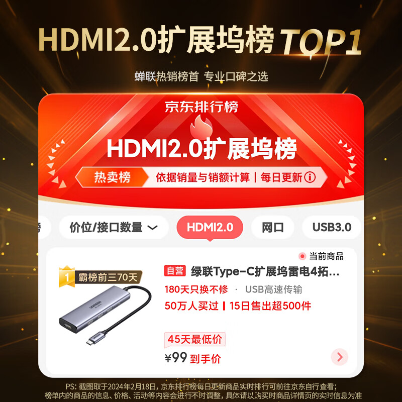 绿联(UGREEN)Type-C扩展坞雷电4拓展坞HDMI转接头4K60Hz苹果电脑转换器USB-C分线器适用MacBook华为手机笔记本价格:89.90元!