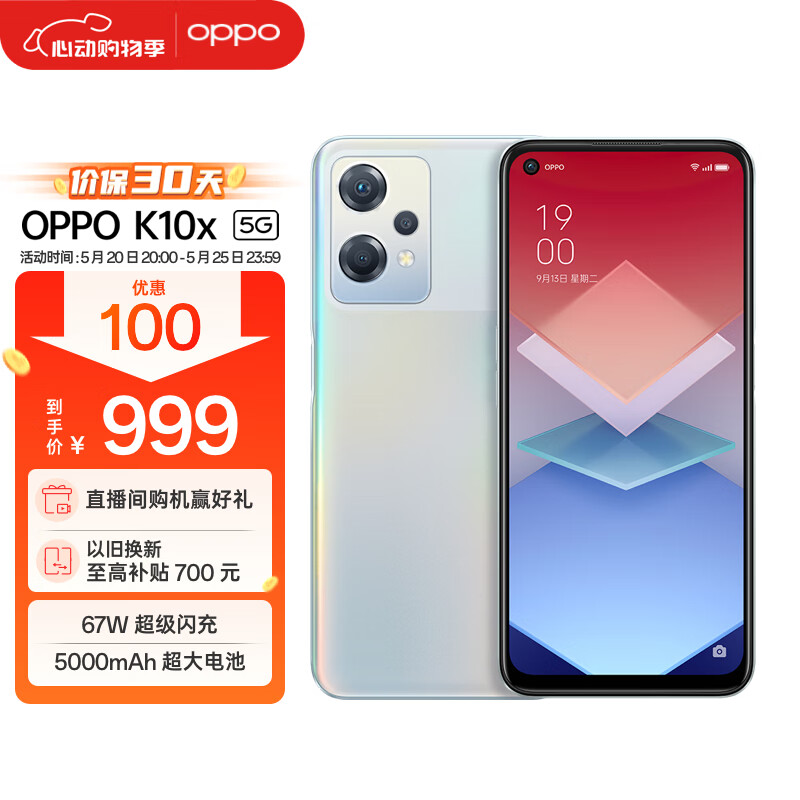 OPPO K10x 闪充超长续航 120Hz高帧屏幕 极光 8GB+256GB 老人安卓防水骁龙游戏电竞智能学生拍照5G手机价格:1099.00元!