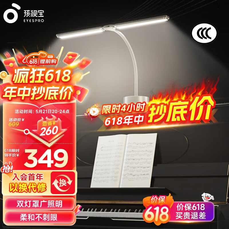 孩视宝全光谱护眼钢琴灯儿童专业练琴智能三角专用台灯学习乐谱灯NS20-P价格:609.00元!