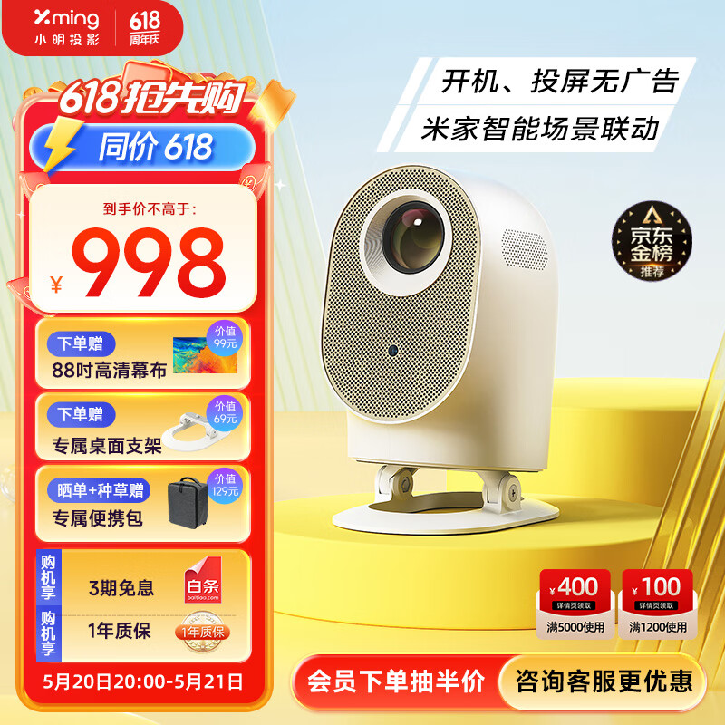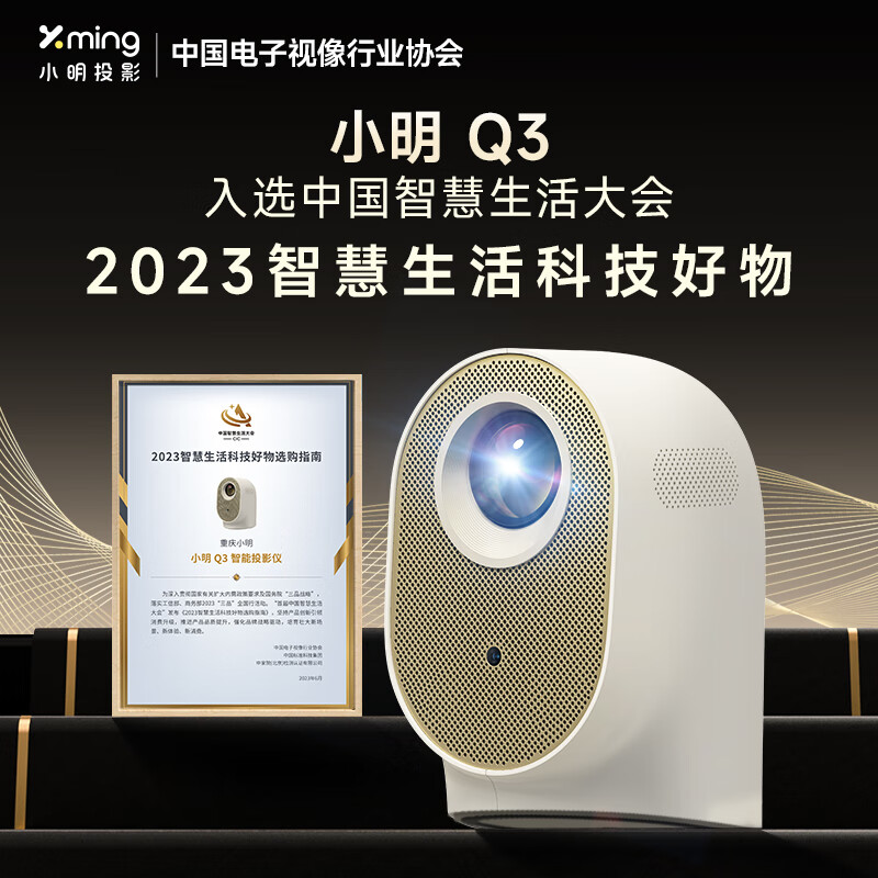 小明 Q3 投影仪家用投影机超高清家用卧室投影智能家庭影院(380 CVIA流明 全自动校正 1080P分辨率)价格:998.00元!