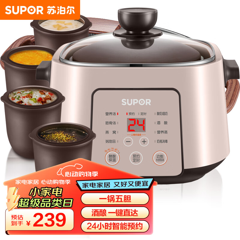 苏泊尔(SUPOR)电炖锅 电炖盅 煲汤锅炖汤锅 燕窝炖盅 隔水炖锅 电砂锅紫砂 婴儿辅食煮粥锅DZ25YC868 2.5L价格:239.00元!