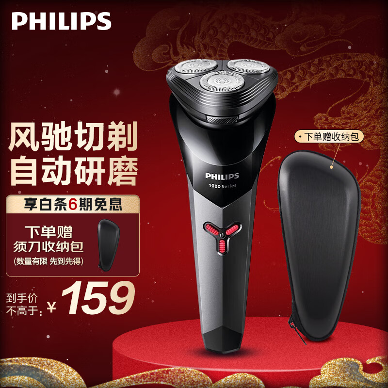 飞利浦(PHILIPS)剃须刀电动男士刮胡刀 进口三刀头 全身水洗胡须刀 生日送男友送老公 【炫酷机身】S1113/02 普通装价格:209.00元!