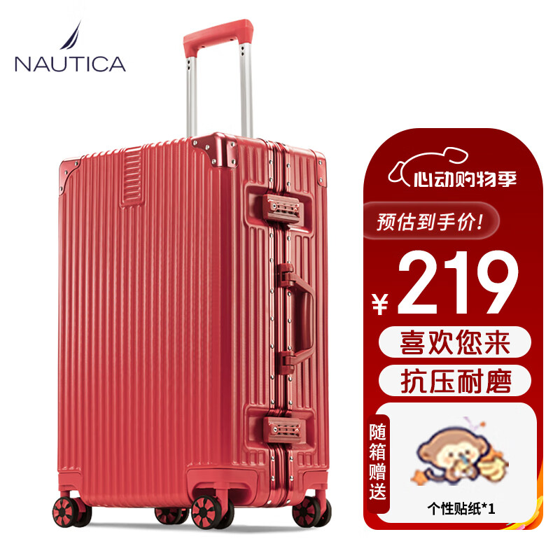 NAUTICA 结婚行李箱陪嫁箱26英寸大红色箱子拉杆箱女皮箱婚礼铝框密码箱价格:219.00元!