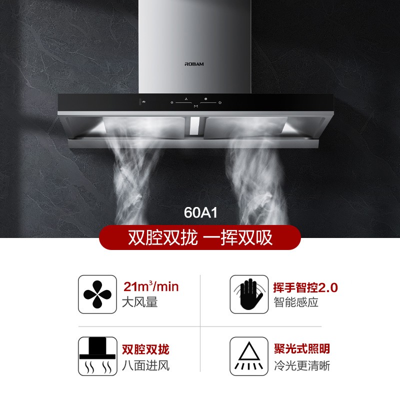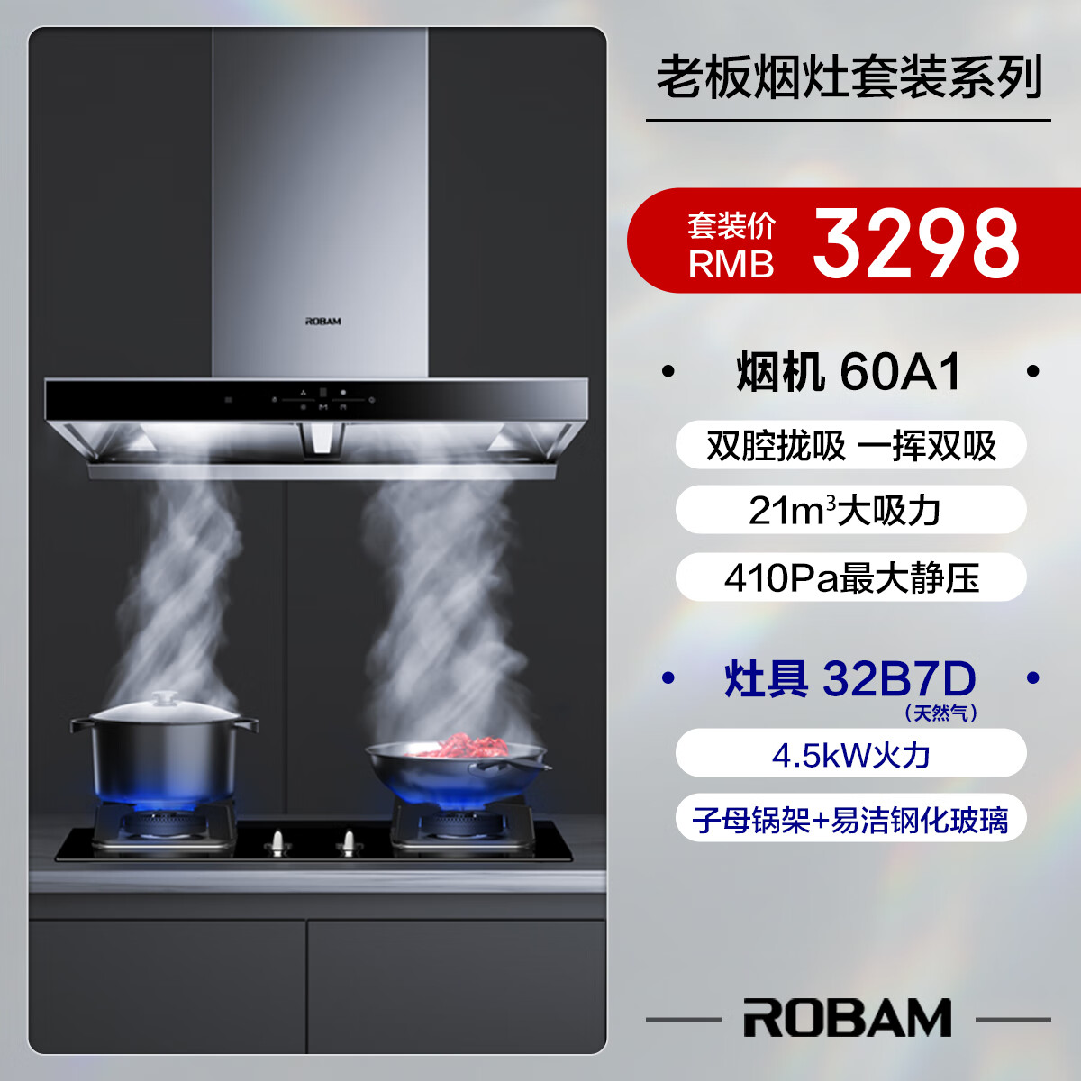 老板(Robam)抽油烟机 欧式双腔21家用顶吸大吸力油烟机4.5kW小尺寸灶具燃气灶烟灶套装60A1+32B7D(天然气)价格:3298.00元!