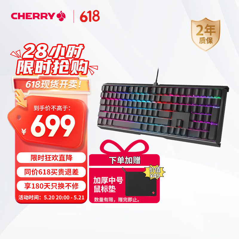 CHERRY樱桃 MX3.0S机械键盘 游戏键盘 电竞键盘 办公电脑键盘 RGB混光键盘 合金外壳 无钢结构 黑色红轴价格:799.00元!