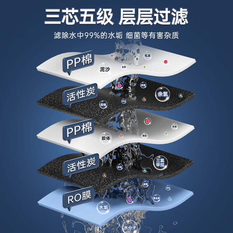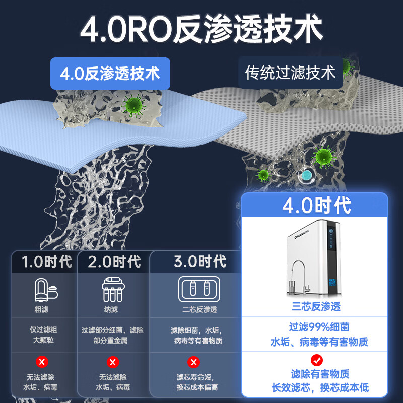 长虹(CHANGHONG)净水器家用直饮自来水纯水机过滤器RO反渗透净水机 除菌除垢除碱 厨下式无陈水省水静音 【除垢直饮】-自行安装价格:999.00元!