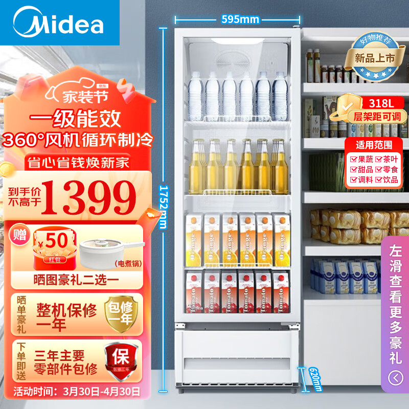 美的(Midea)展示柜商用318升 风循环制冷冷藏立式玻璃门冰箱陈列柜 超市便利店餐馆饮料啤酒柜 SC-318GM(E)价格:1499.00元!