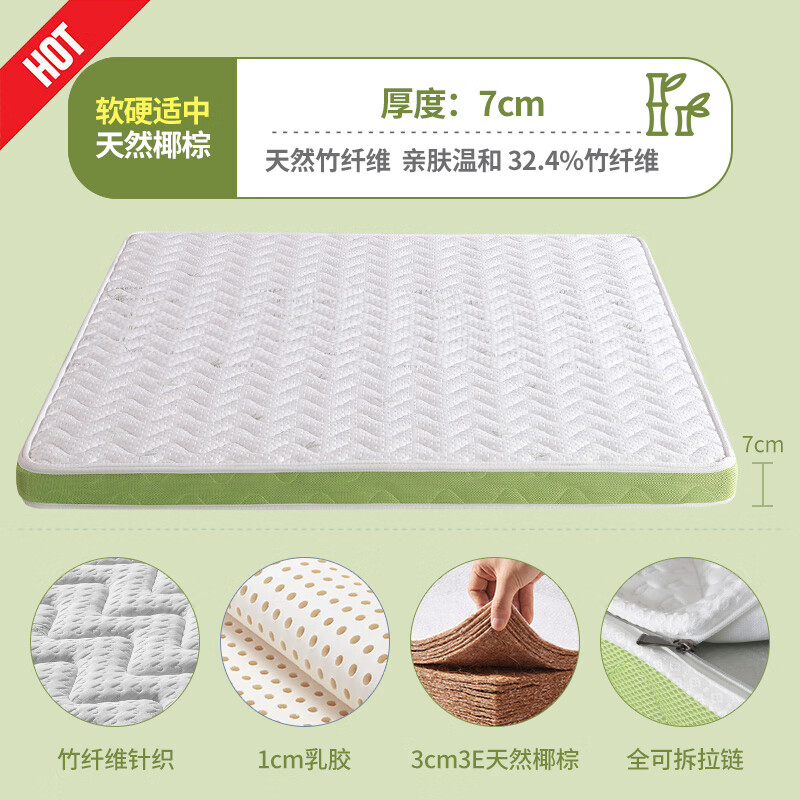 亿隆(yilong)椰棕床垫棕垫硬棕榈床垫子床垫7CM(含1CM乳胶)竹纤维1.8*2价格:723.06元!