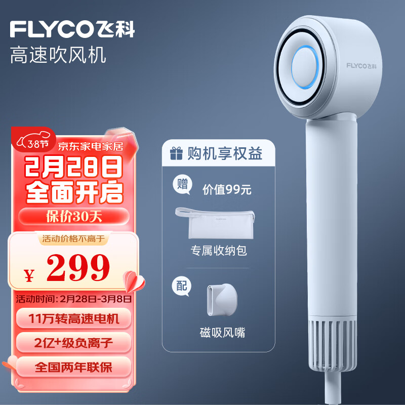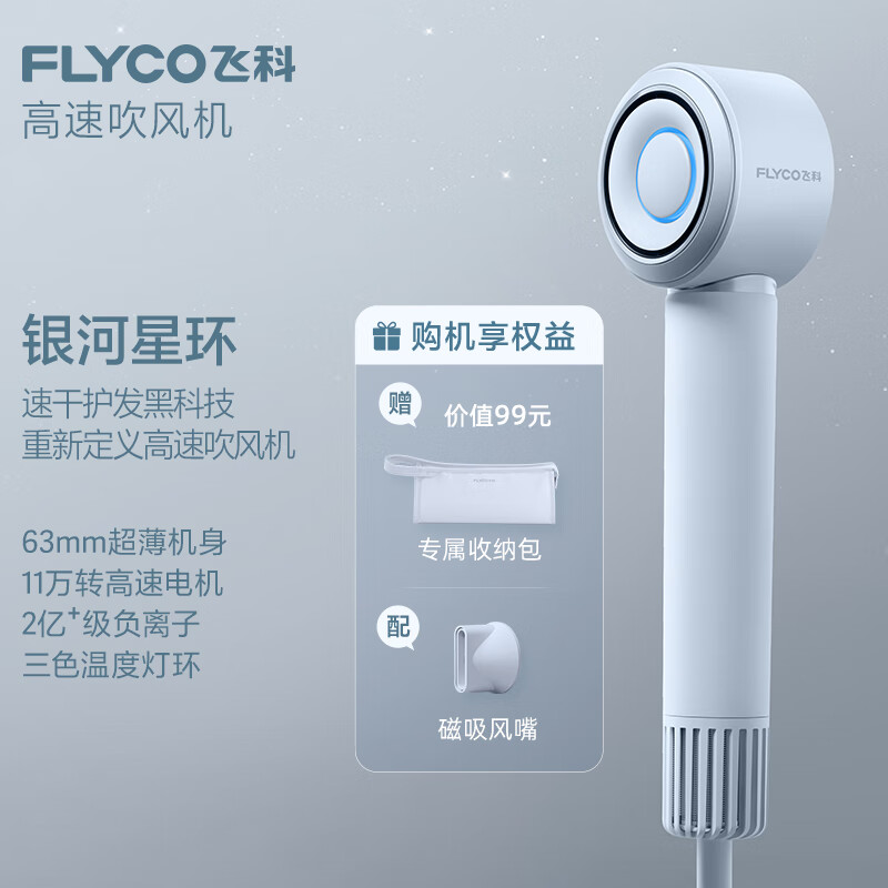 飞科(FLYCO)吹风机家用高速电吹风筒大功率负离子护发大风力速干便携学生宿舍风筒低噪音节日礼物FH6371 【星空灰】价格:389.00元!