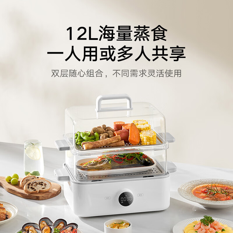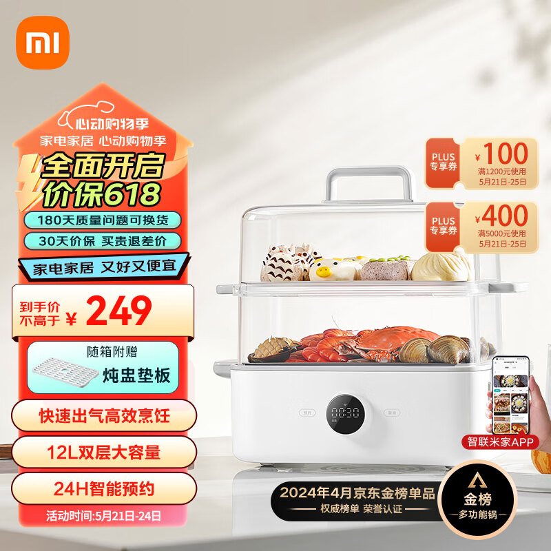 米家小米智能多功能锅电蒸锅煮蛋器蒸蛋器家用 多用途一体机 蒸鱼包子杂粮 食品级材质 双层大容量12升价格:249.00元!