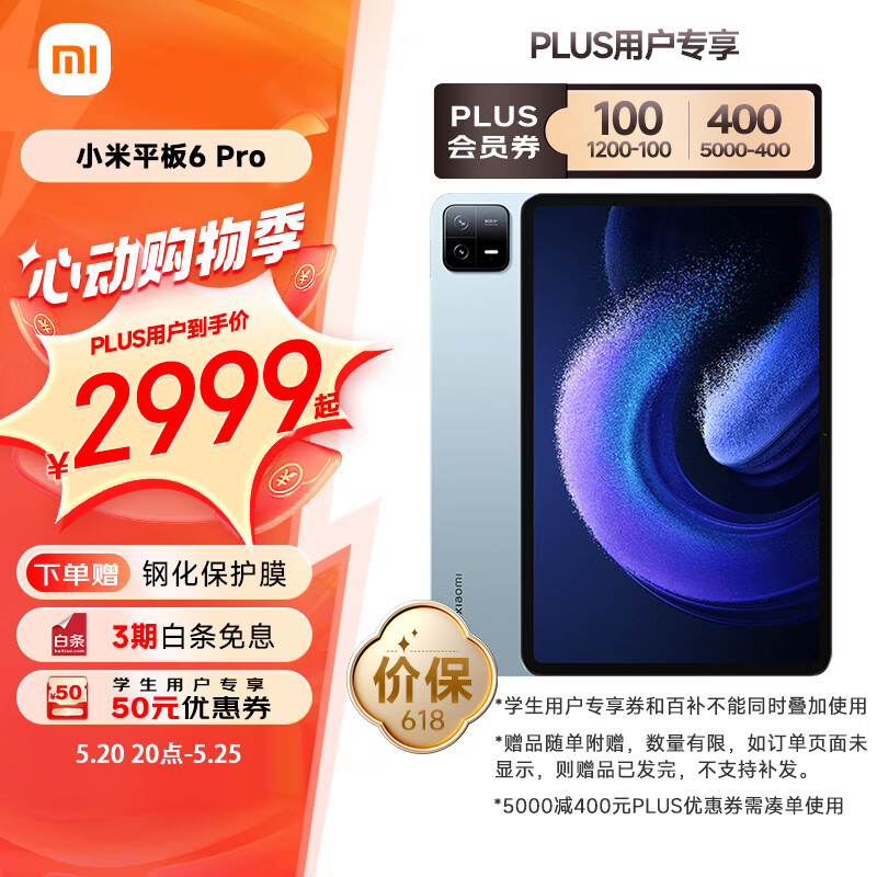 小米平板6Pro xiaomiPad 11英寸 骁龙8+强芯 144Hz高刷2.8K超清 12+512GB 移动办公娱乐平板电脑远山蓝价格:3099.00元!