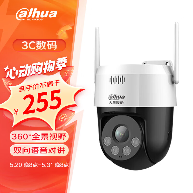 dahua大华无线摄像头家用室外400万wifi监控器360度无死角带夜视手机远程语音云台球机 2H3400-ADW价格:239.00元!