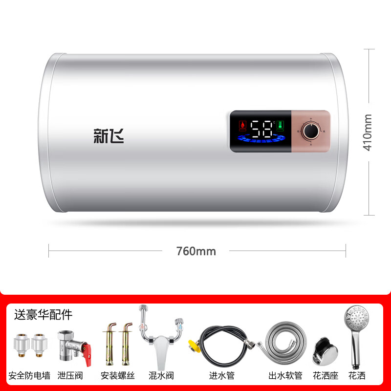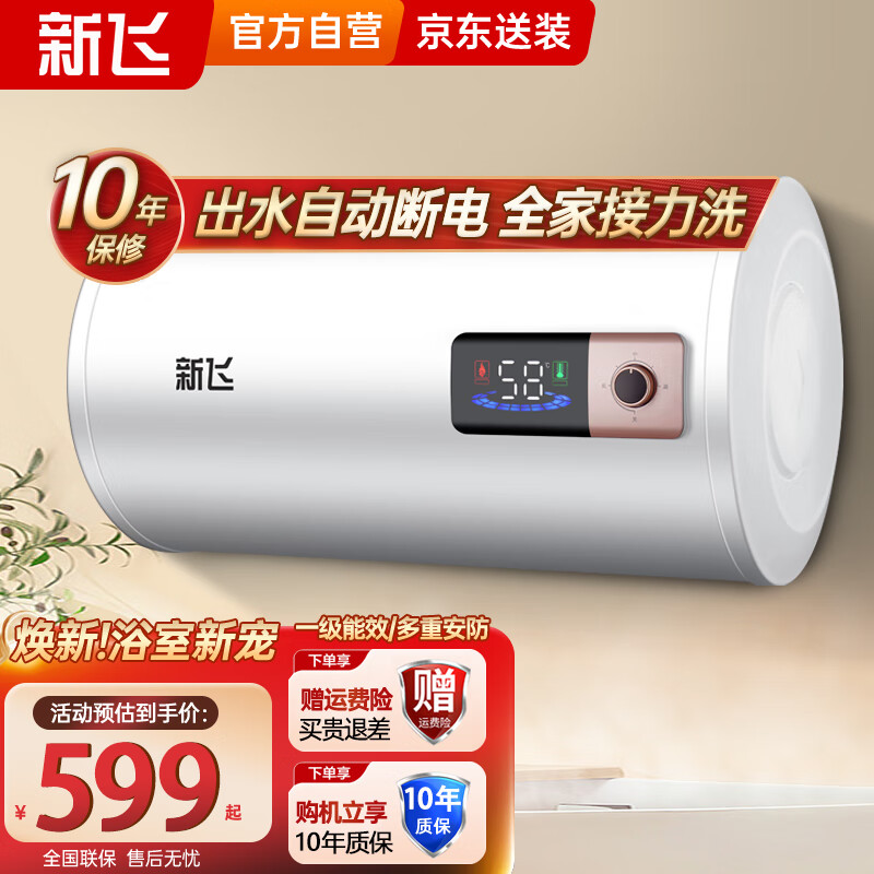 新飞家用电热水器圆桶60升储水式2200W一级能效节能出水断电速热恒温卫生间洗澡出租房DSZF-B207-60L价格:599.00元!