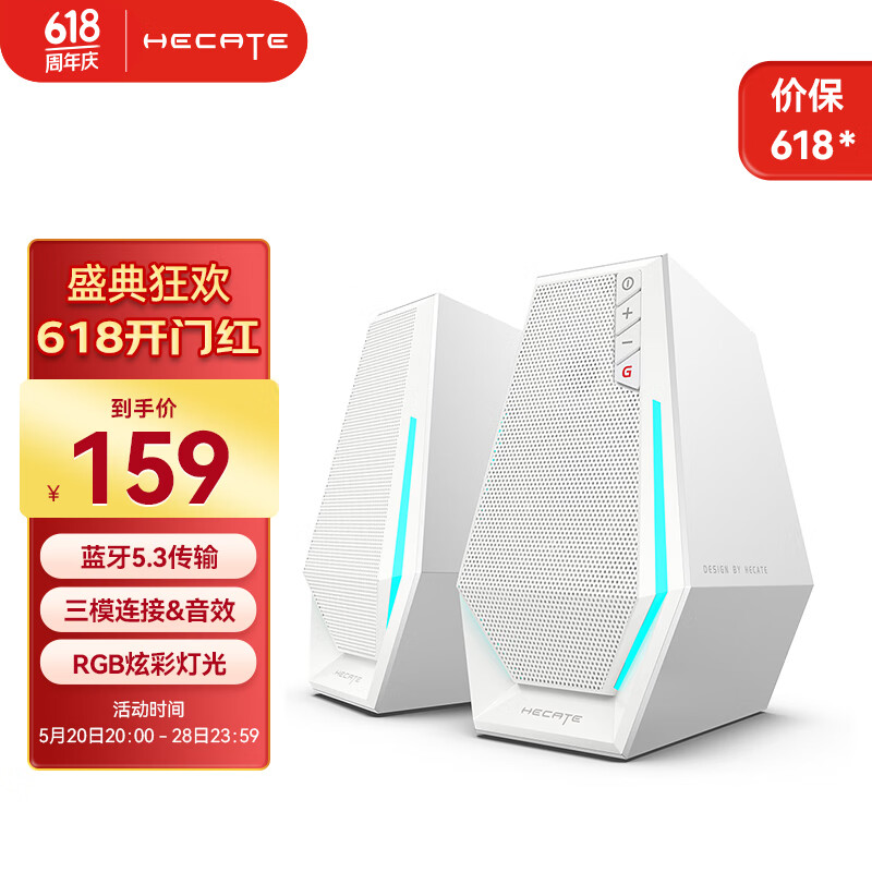 漫步者(EDIFIER)HECATE G1500游戏音箱 2.0电竞桌面音响 蓝牙5.3 电脑多媒体家用台式机 RGB炫酷灯效 白色价格:179.00元!