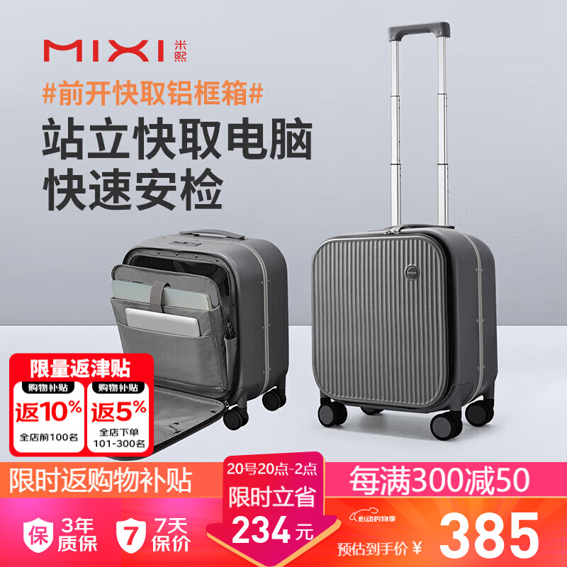 米熙前开盖商务铝框拉杆箱子男行李箱女密码箱包登机箱18英寸矿岩灰70价格:619.00元!
