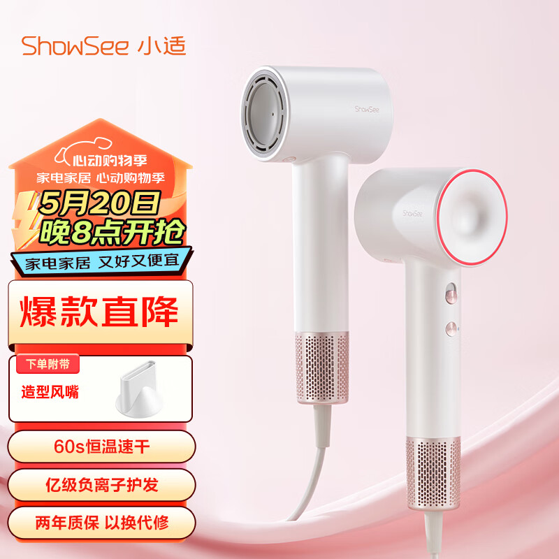 小适11万转高速马达吹风机家用风筒大功率/高浓度负离子护发/大风力速干降噪电吹风 云雾白 A18-W价格:249.00元!