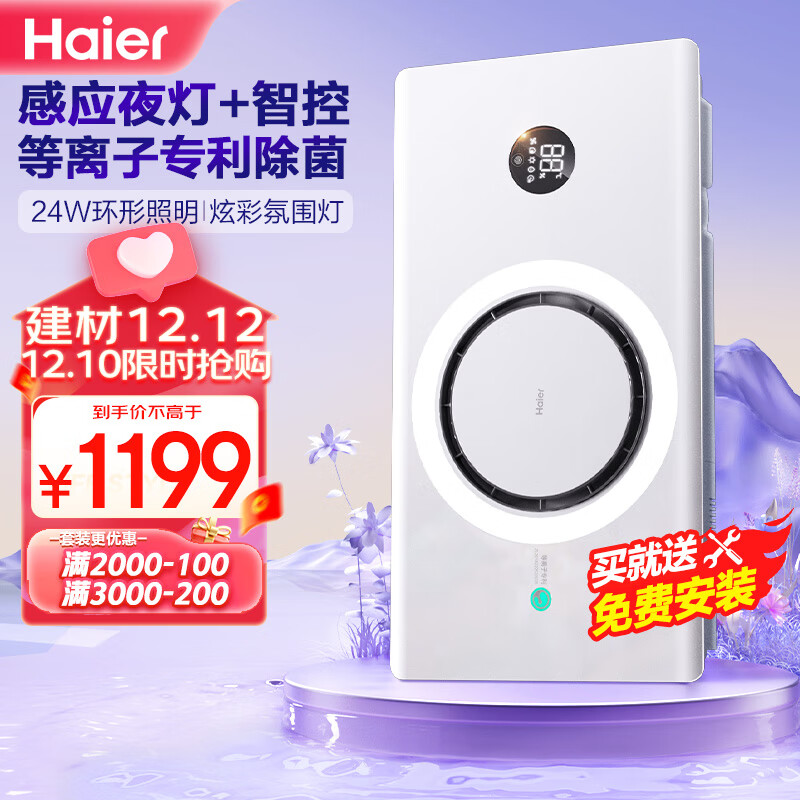 海尔浴霸Q360U1环形风暖浴霸智能浴室排气取暖器卫生间大功率环形出风价格:1299.00元!