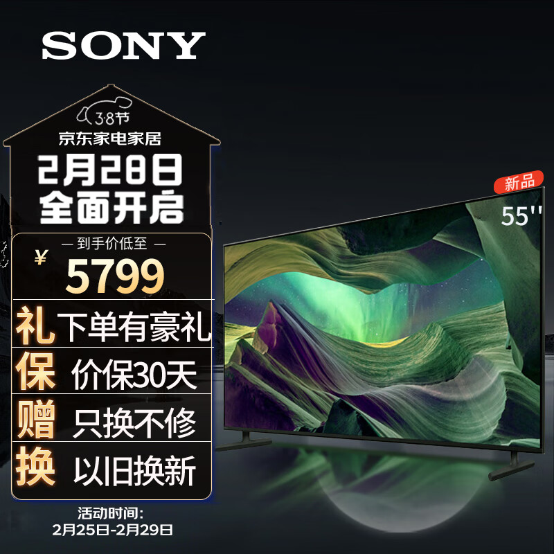 索尼(SONY)KD-55X85L 55英寸 4K超高清HDR 120Hz高刷 X1芯片 杜比视界全景声 屏超薄AI智能平板电视价格:5799.00元!