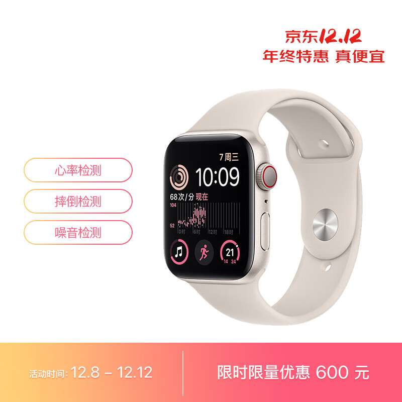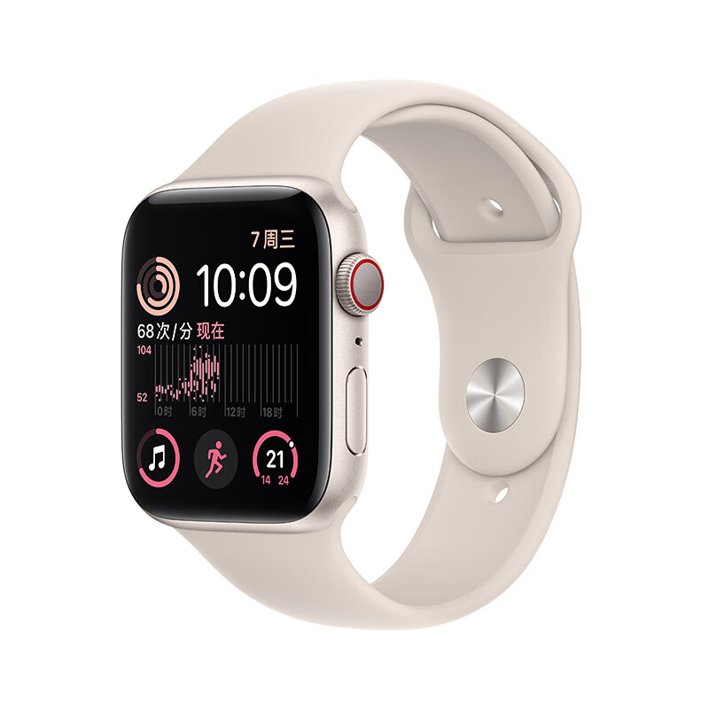 Apple Watch SE 2022款智能手表GPS + 蜂窝款44毫米星光色铝金属表壳星光色运动型表带eSIM健康手表MNPW3CH/A价格:1999.00元!