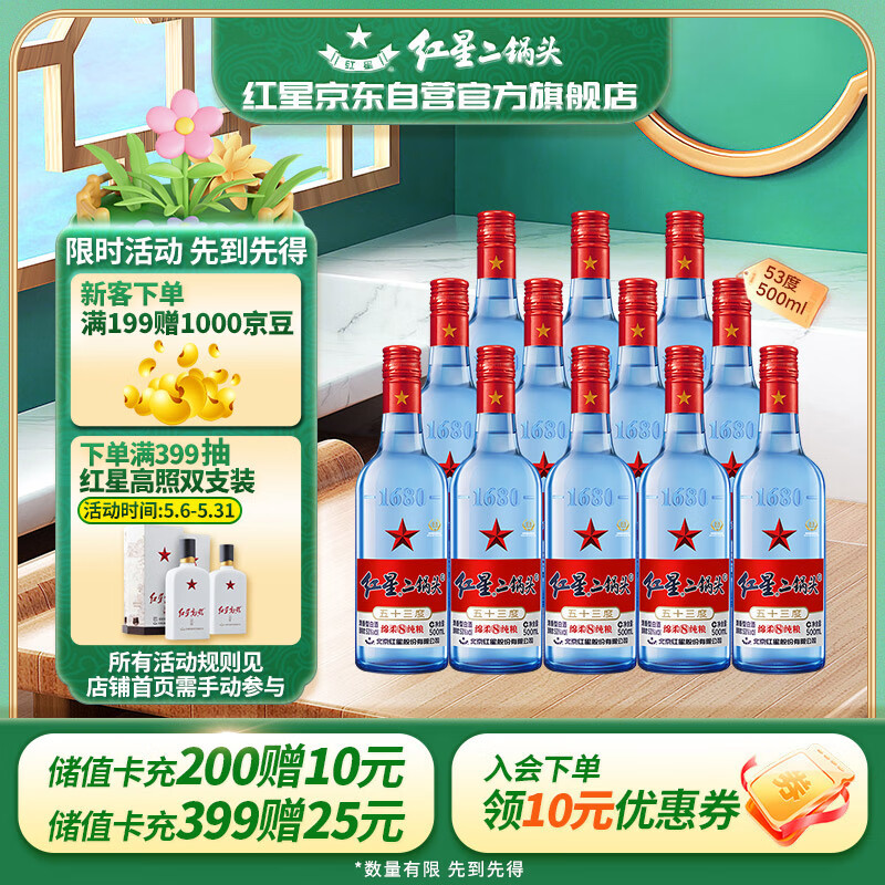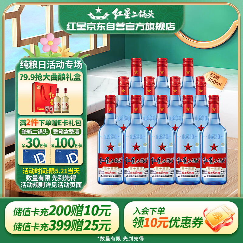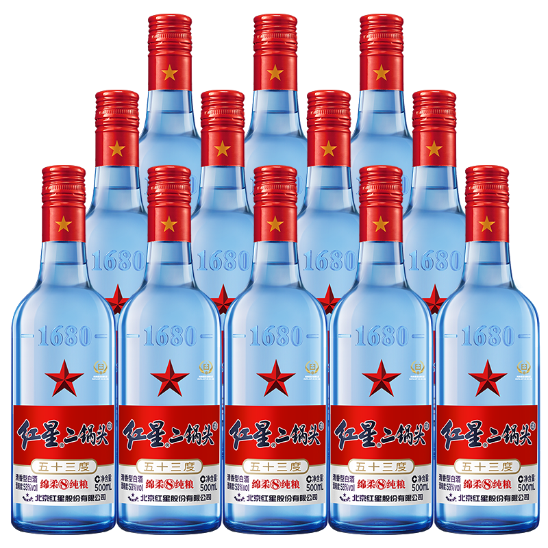 红星二锅头蓝瓶绵柔8陈酿 清香型白酒 53度 500ml*12瓶 整箱装 口粮酒价格:418.00元!