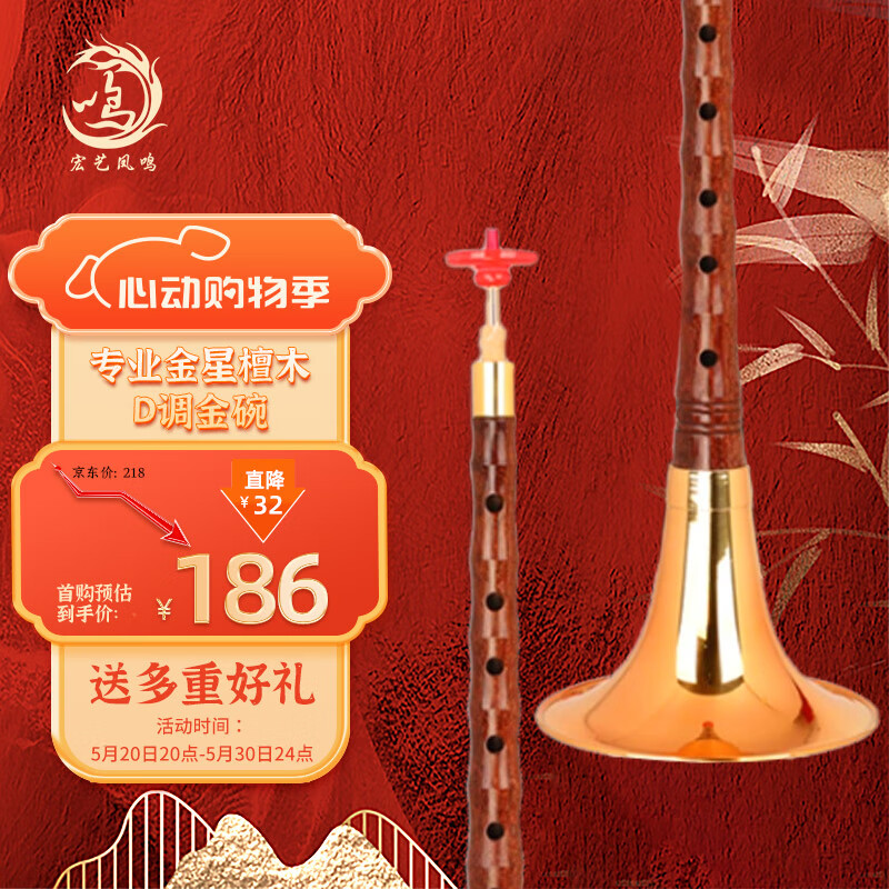 宏艺凤鸣(HongYiFengMing)唢呐乐器专业金星檀木D调初学者全套成人优选民间喇叭碗价格:218.00元!