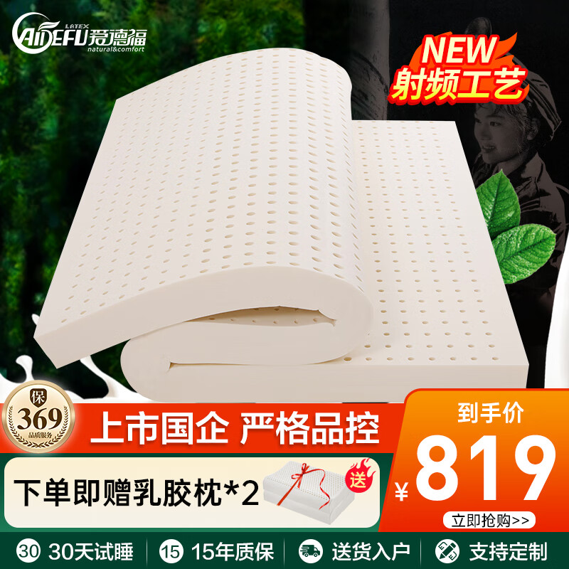 爱德福泰国进口天然乳胶床垫一体无线射频单双人榻榻米薄垫子120*200*5价格:969.00元!