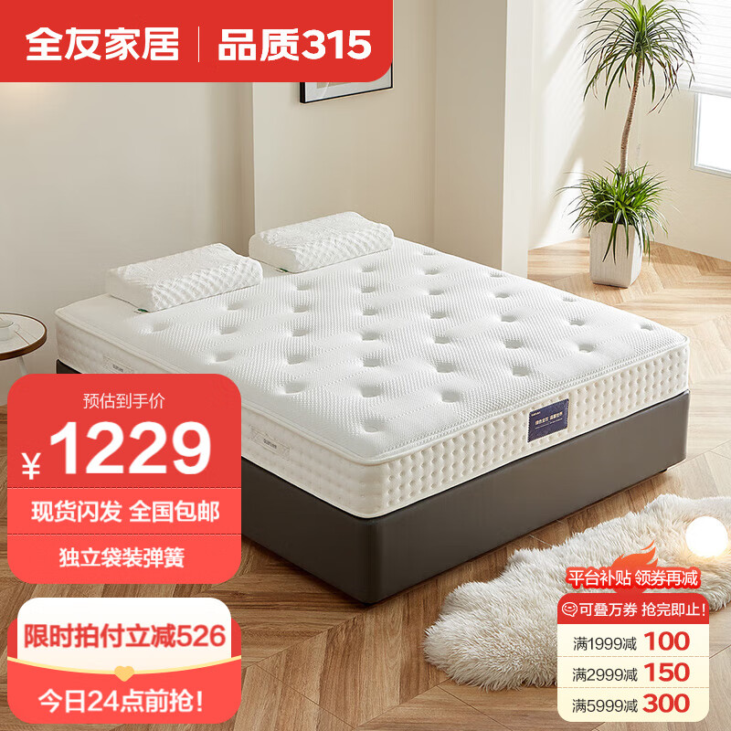 全友家居 床垫独立袋装弹簧床垫1.8x2米卧室乳胶床垫双面可用117007价格:1755.71元!